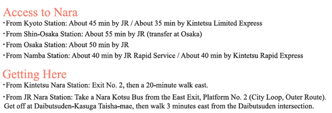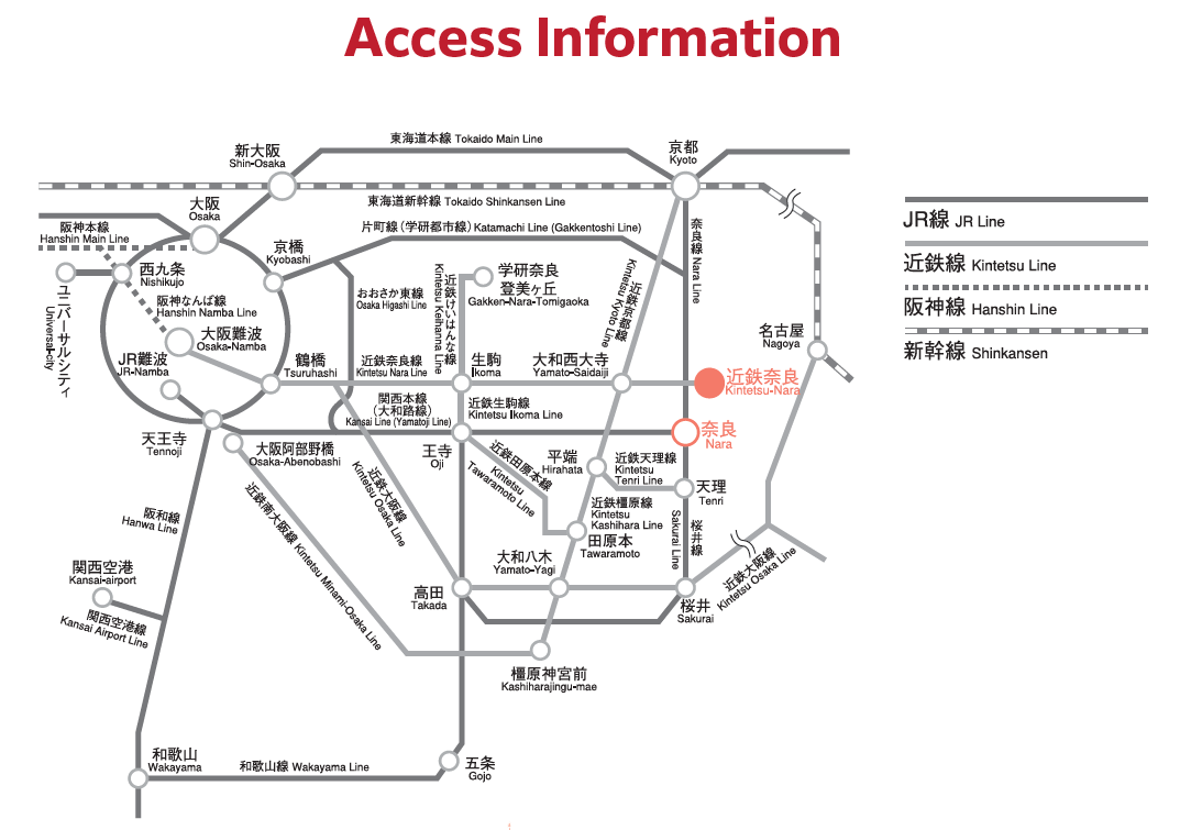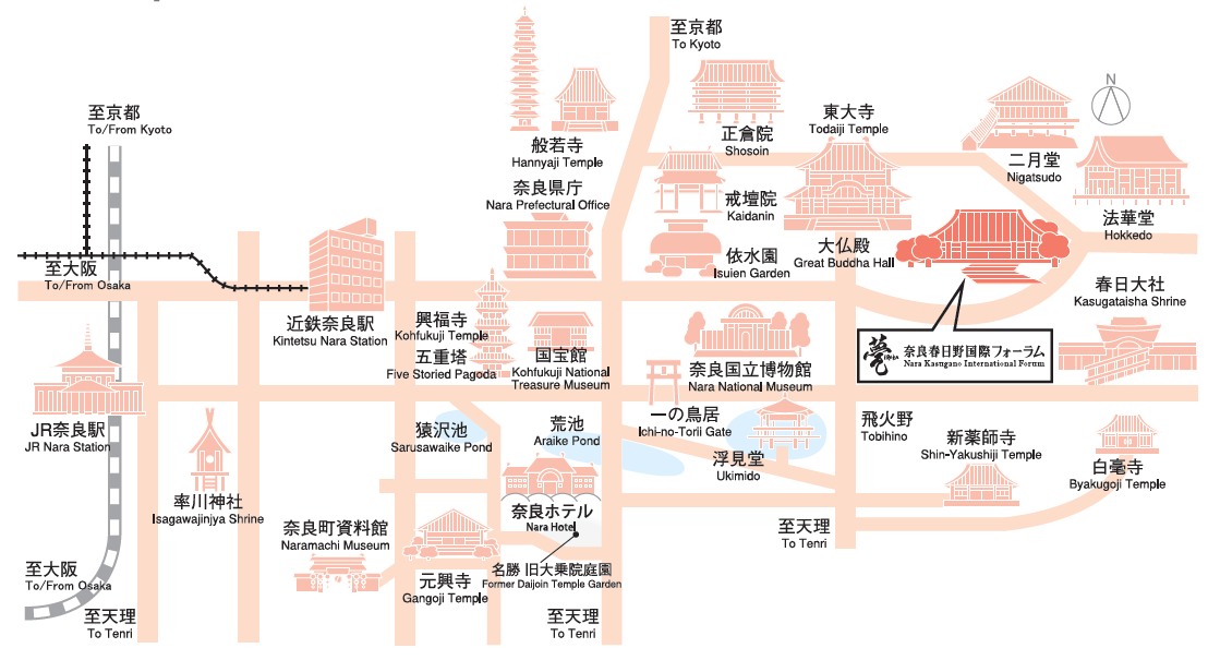Links Venue Nara Kasugano International Forum IRAKA Hotel Hotel Nikko Nara Access Limousine buses to Kansai Airport Kintetsu Nara Sta. JR Nara Sta. Nara Travel Guide