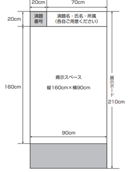 - ポスター発表用のパネルは,A0(Aゼロ)サイズ(W841㎜×H1189㎜)以内のポスターをご用意ください.
